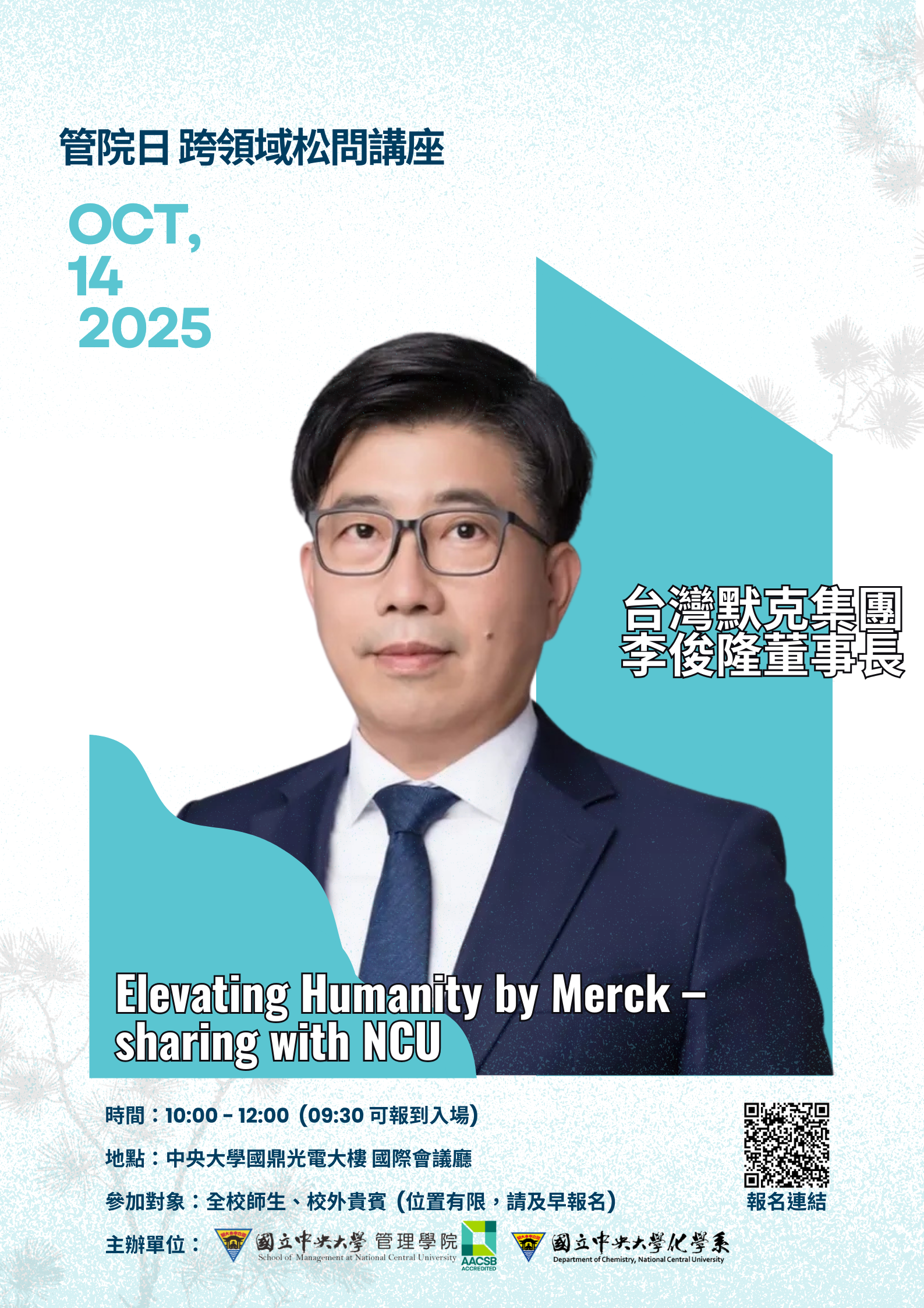 【 管院日 跨領域松問講座 #7】 Elevating Humanity by Merck – sharing with NCU
