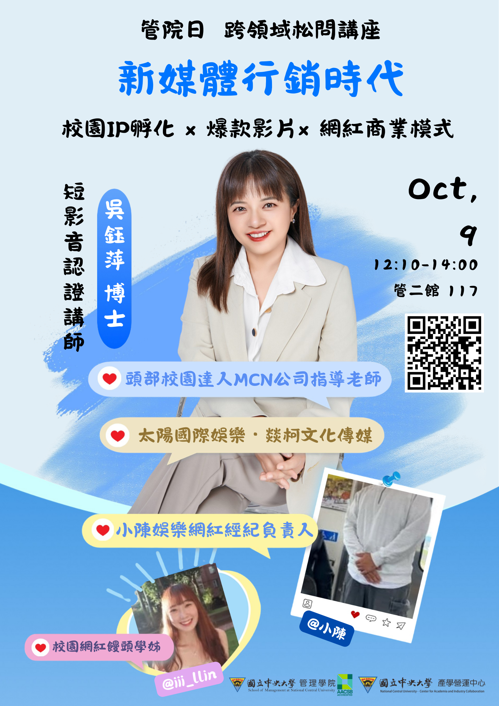 管院定期舉辦「管院日 跨領域松問講座」活動,此活動將邀請各系所推薦所屬領域專業人才進行演講,期待師生們透過管院日進行新知的吸收與彼此交流、塑造院內學術研究氛圍與凝聚力。